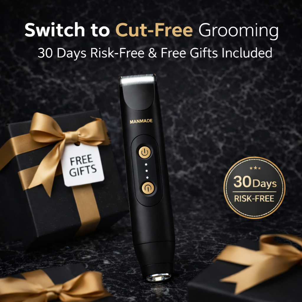 A grooming upgrade shouldn't feel risky. That's why ManMade comes with a 30-day money-back guarantee and free gifts. That's how confident we are that you'll never go back to razors.