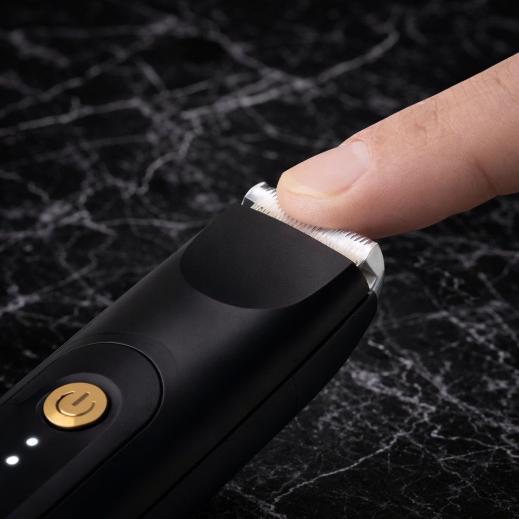 Our rounded blade design trims hair without directly touching skin, so you can groom your package without holding your breath. No more bloody toilet paper situations or that awful sting when you hop in the shower.